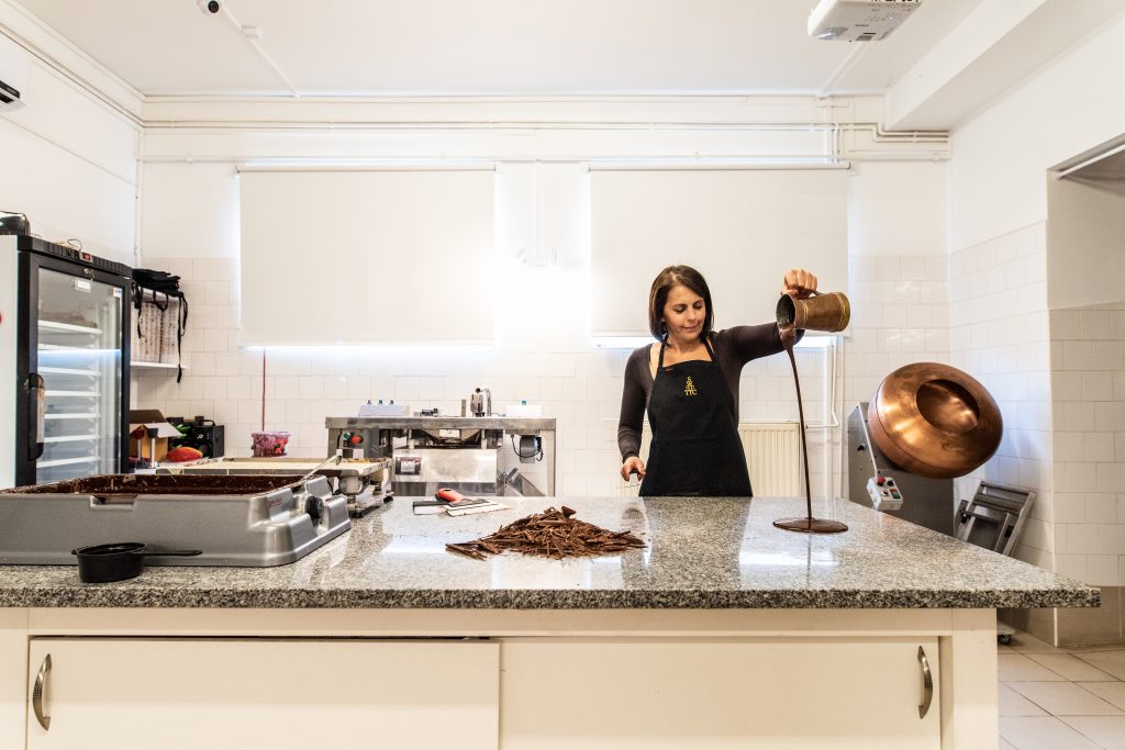 Valójában egy hobbiból kinőtt családi vállalkozás a miénk. Én is és a férjem is közgazdászok vagyunk. A csokisoknál tipikusnak mondható, hogy mindenki pálya elhagyó. Itthon ugyanis nem igazán lehet szakmai keretek között megtanulni a csokoládé készítést. Eredetileg hobbi szinten dísztortát készítésével kezdtem el foglalkozni, még a Gyes alatt. Szerettem volna a tudásomat magasabb szintre emelni, ezért elmentem egy cukrász képzésre. Közben, az egyik helyen, ahol cukrásztanonc voltam, egy francia mestercukrásszal dolgoztam, és ott találkoztam a csokoládéval.