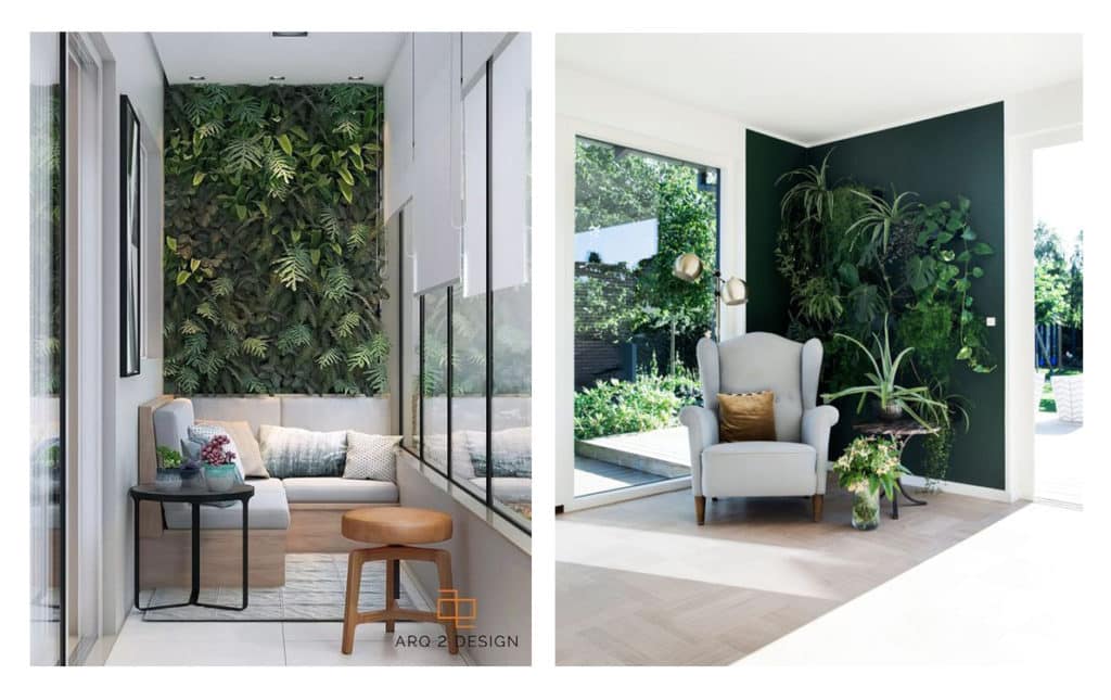 Pár éve kerültek be a köztudatban a zöld falak (1. kép), melyeknek használatával úgy érezhetjük, mintha kint lennénk a természetben. Ha nem szeretnétek egy egész falat telerakni növénnyel, akkor kisebb felületben is gondolkodhattok, mint például a 2. képen, ahol a falat zöldre lefestették és jó pár növénnyel díszítették.