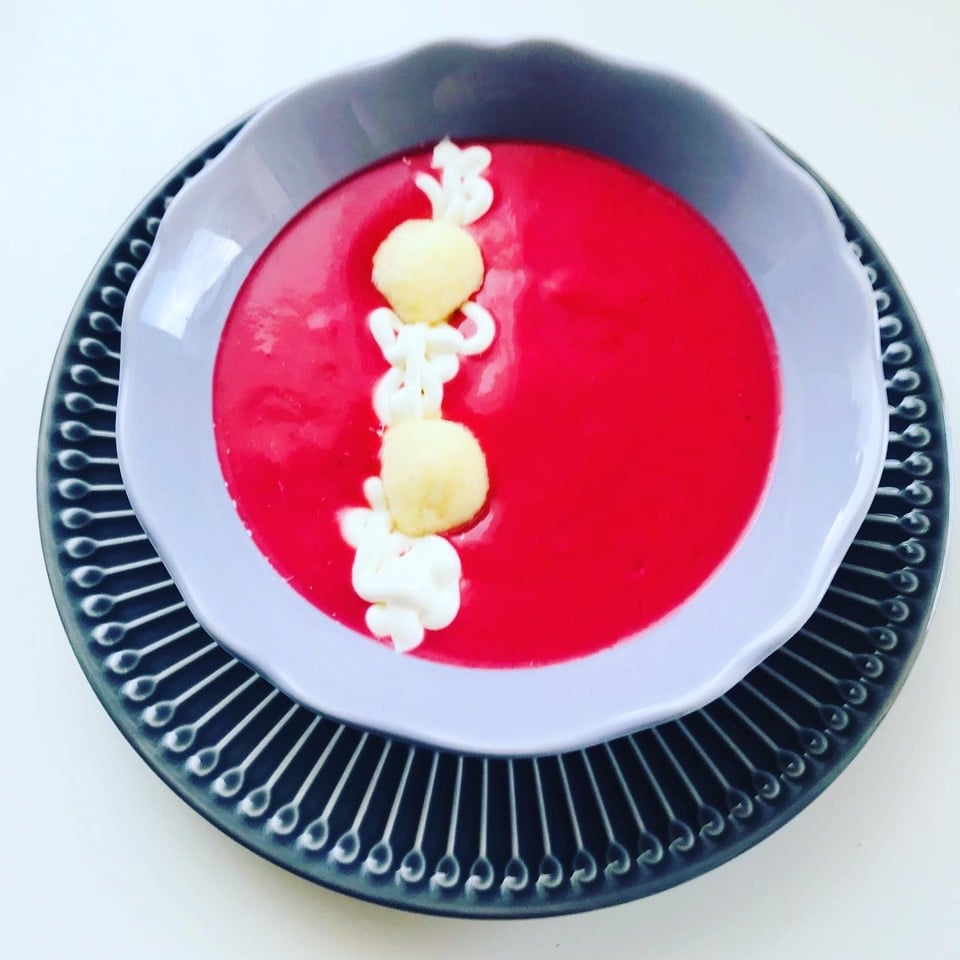 Málnakrém leves apró túrógombócokkal