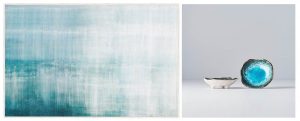Végezetül pedig íme 2 csodás kiegészítő az óceán színeiben, egy szőnyeg és egy tál.