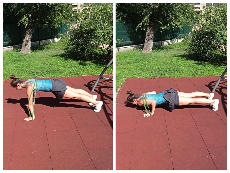 Has és farizom feszít, hátad egyenes, tenyér a vállak alatt helyezkednek el. Csípődet billentsd magad alá, hogy a hátad, derekad egyenes maradjon.