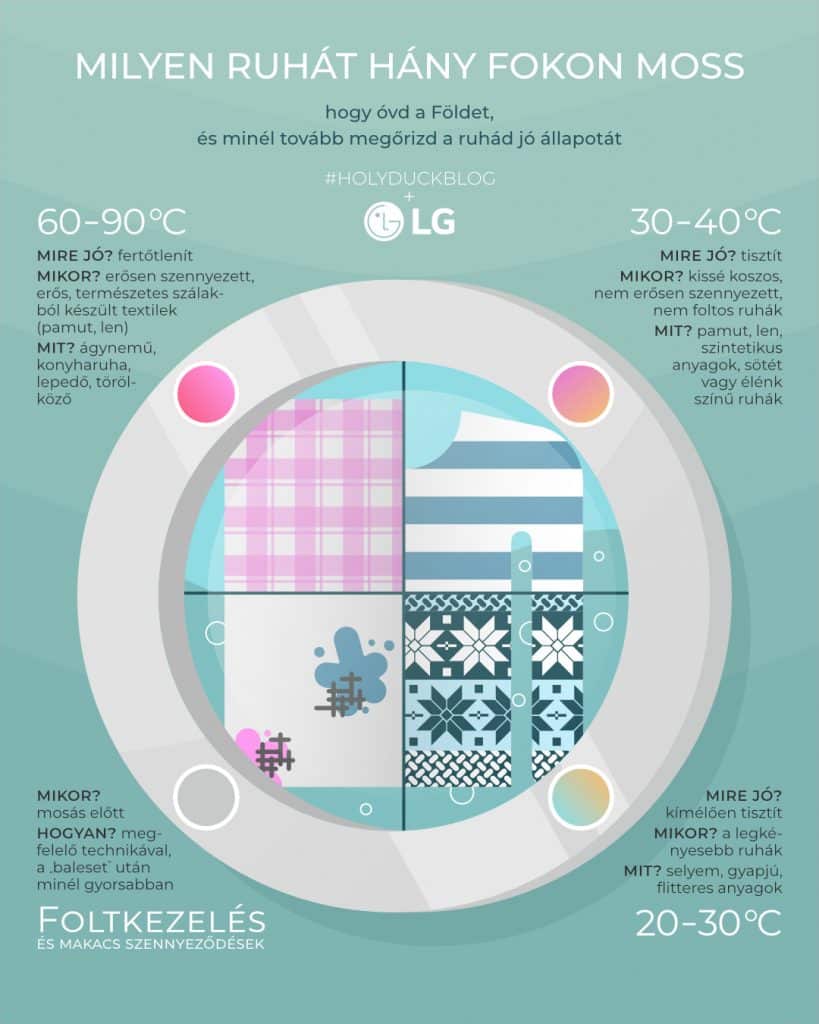 Amikor ruháink kimennek a divatból, megfakulnak, kinyúlnak vagy már nem passzolnak olyan tökéletesen méretben, hajlamosak vagyunk gyorsan megszabadulni tőlük. Ennek eredménye, hogy Európában évente 5,8 millió tonna alig használt ruhát dobunk ki. Mindannyian tehetünk azonban azért, hogy ez a szám csökkenjen: azon túl, hogy minőségi, környezetbarát termékeket vásárolunk, mosási szokásaink újragondolásával tovább megőrizhetjük ruháink eredeti állapotát. Az LG a Care for What You Wear kampány keretében Mengyán Eszterrel, a Holy Duck! blog írójával és a Fenntarthatodivat.hu oldal alapítójával együttműködve összefoglalta, hogyan óvhatjuk a tudatos mosással ruháinkat.