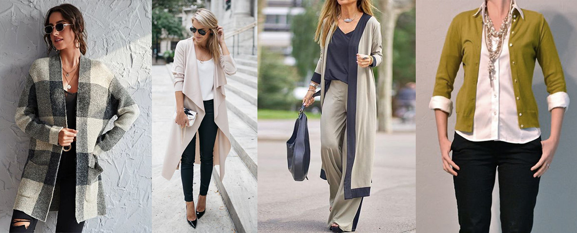 Egy kardigán lehet kabátszerű, hosszan lelógó, dekoratívan lebegő, sőt a régi, egyszerűbb darabunkat is feldobhatjuk egy ing és némi nyaklánc bevetésével.