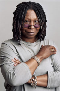 66 éves Whoopi Goldberg, aki karrierje során kapott már Oscar-, Tony-, Emmy-, Grammy- és Golden Globe díjat is. Gyermekkorában diszlexiával küzdött, ami nagyon nehézzé tette számára az iskolai rendszerben történő tanulást, meg is szakította tanulmányait – viszont már nyolcévesen színitanodába járt, ahol azonnal felfigyeltek tehetségére. Első komoly szerepét a Bíborszín című filmben kapta, amely Alice Walker Kedves Jóisten című regényéből készült 1985-ben, és a feketék déli államokban történő elnyomásáról szól. A főszerep mindjárt Oscar-jelölést hozott a színésznőnek, aki a megszaparodó filmes felkérések miatt a Broadway musicalekben innentől kezdve egyre kevesebbet szerepelt. A legjobb női mellékszereplőnek járó Golden Globe és Oscar-díjat végül az ikonikus Ghost című film hozta meg számára, amelyben Demi Moore-ral és Patrick Swazey-vel közösen szerepelt. Vígjátékai közül a leghíresebb a két Apácashow-film. Három házassága volt, az elsőből született egy lánya – goldberg mindössze 18 éves volt egykor, és lánya szintén rendkívül hamar szült, így 24 évesen már nagymama volt.