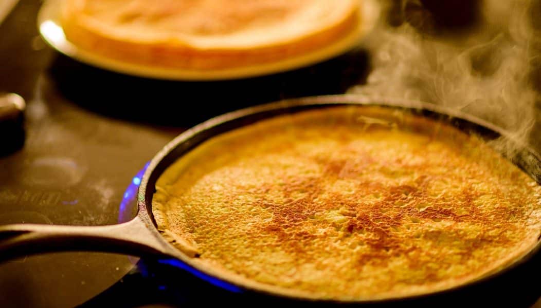 - Forró serpenyőben elkezdjük sütni a palacsintát, mikor az egyik oldala kész, megfordítjuk.