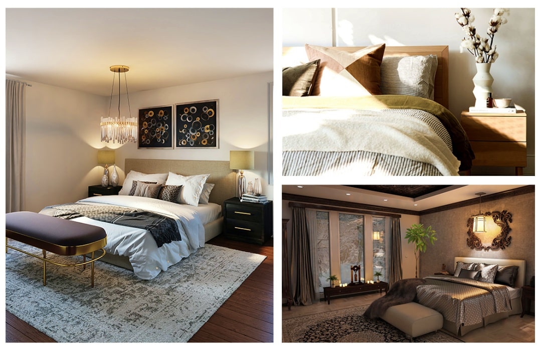 Bútor szempontból bőven elég egy franciaágy egy kényelmes matraccal, éjjeli szekrények, egy komód vagy fésülködő asztal. A szoba nagyságától függően jöhetnek még extrák, például egy fotel vagy az ágy végébe egy pad amelyre lepakolhatsz.
