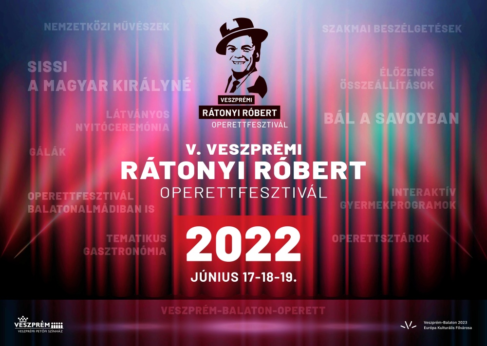A jubileumi Veszprémi Rátonyi Róbert Operettfesztivál június 17-én az egész veszprémi belvárost felölelő nagyszabású felvonulással veszi kezdetét. A színes kavalkádban a színház és a zene mellett, a tánc és a cirkuszművészet is megjelenik, mely megalapozza a hangulatot. A három nap során két nagyoperettet is láthat a közönség, a Monarchia Operett, valamint a Soproni Petőfi Színház vendégjátékát. Érkezik továbbá Derzsi György nagy sikerű Szerelmem, Sárdy című előadása is. Az operett szerelmesei napközben sem maradnak program nélkül. Június 18-án, szombaton Oszvald Marika mesél az életútjáról, vasárnap Benkő Péter oszt meg történeteket Rátonyi Róbertről, de Egy fess pesti estet is eltölthetnek a nézők Kamarás Iván vezetésével.