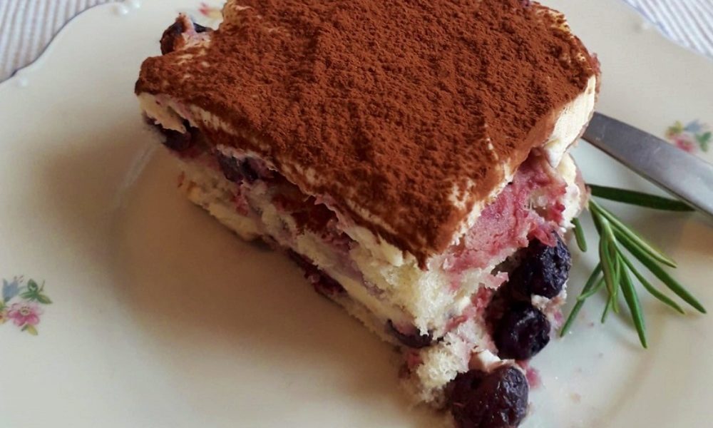 400 gramm áfonyát (fagyasztott is lehet) 3 evőkanál kristálycukorral összefőzzük, egy kicsit össze is nyomkodhatjuk. Az így keletkezett levet felengedjük annyi tejjel, hogy legalább 2 deci legyen, majd ebbe mártogatjuk meg a piskótát. Lerakjuk egy jénai tálba, megszórjuk az áfonyával és rásimítjuk a krémet, ezt ismételjük. Tetejét megszórjuk kakaóval.