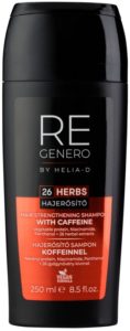 A gyógynövényes alapanyagokat nagyon kedveljük. A Helida-D Regenero gyógynövény komplex, 26 növény, többek között mezei zsúrló, nagycsalán, kamilla, körömvirág, csipkebogyó, édeskömény, diólevél és rozmaring alkoholos oldata. A gyógynövények közül a nagycsalánt a bőr keringését fokozó hatásúként, többet gyulladás- és irritációcsökkentőként tart nyilván a szakirodalom. A Regenero komplex fejlesztésekor a Dr. Battyáni Zita professzor által végzett tesztek során több alanynál azt tapasztalták, hogy a hajszálak növekedése fokozódott, valamint a még életképes hajhagymák is újra növekedésnek indultak. Nem késlekedtünk hát mi sem kipróbálni!