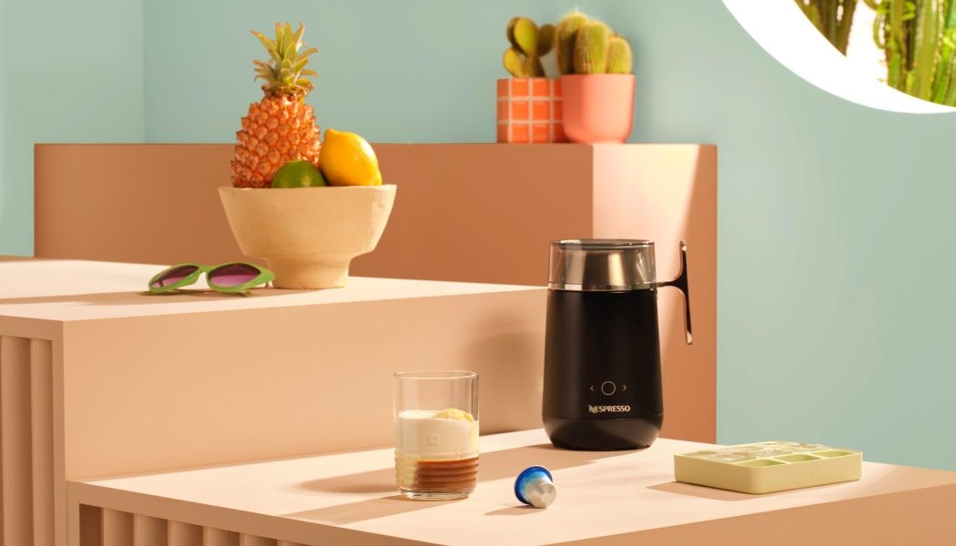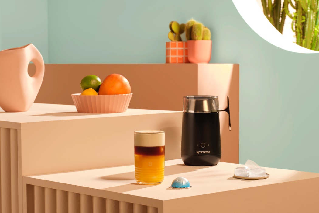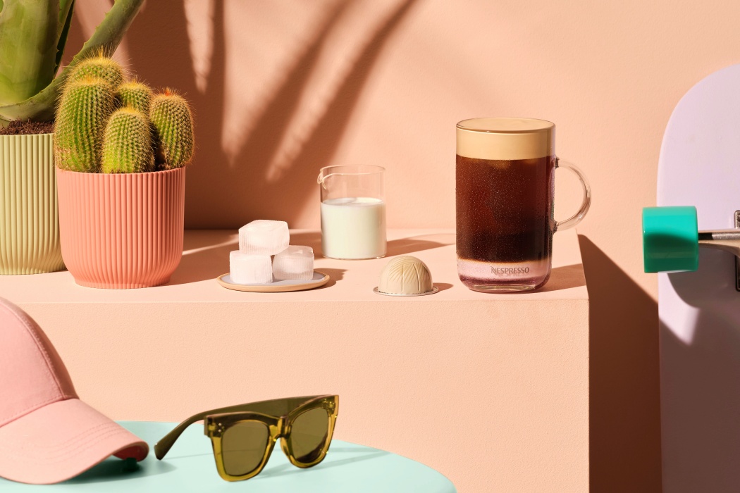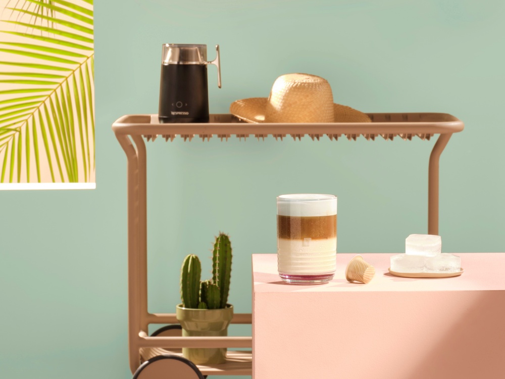 4. Töltsük az ital tetejére az elkészült tejhabot, majd készítsünk a keverékre 40 ml espresso-t a Nespresso Original Coconut Flavour Over Ice kapszulából.