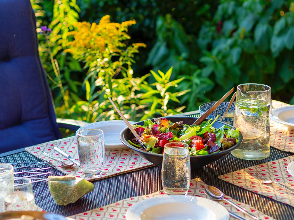 A szervezet munkáját elsősorban úgy könnyíthetjük meg, ha táplálkozásunkra odafigyelünk. Lehetőség szerint fogyasszunk könnyen emészthető, magas víz- és folyadéktartalmú ételeket, például zöldséges fogásokat, különböző leveseket. A nehezebb, zsíros, fűszeres ételeket érdemes kerülni, a szervezet számára ugyanis megterhelőek, ráadásul az elkészítésük is bonyolultabb a nagy melegben. Turmixolással könnyen készíthetünk hideg leveseket, például mediterrán gazpachot vagy uborkalevest. A salátafélék is táplálóbbak, ha darabolt sajtot, kuszkuszt keverünk hozzájuk, de jó megoldások lehetnek a melegebb napokra a margarin alapú zöldségkrémek is.