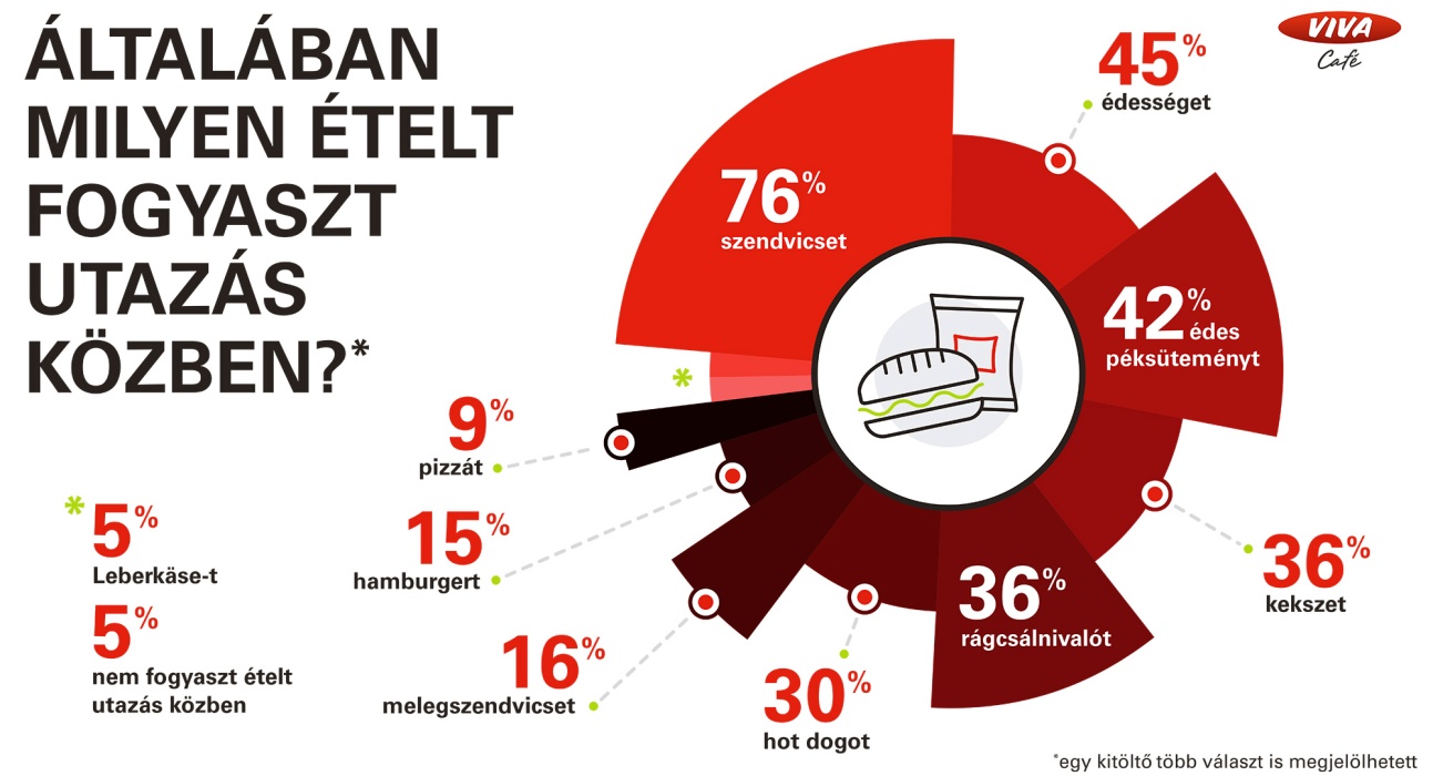 Érdekesség, hogy utazáskor ugyanolyan népszerűek a benzinkúton vásárolt ételek, mint az otthonról hozott fogások: a kitöltők 64%-a szokott a töltőállomáson snacket vásárolni, 63%-uk pedig házilag is készít uzsonnacsomagot. A legtöbben ezeket utazás közben fogyasztják el (66%), de sokan állnak meg étkezni pihenőhelyen (54%) vagy benzinkúton (42%) is.
