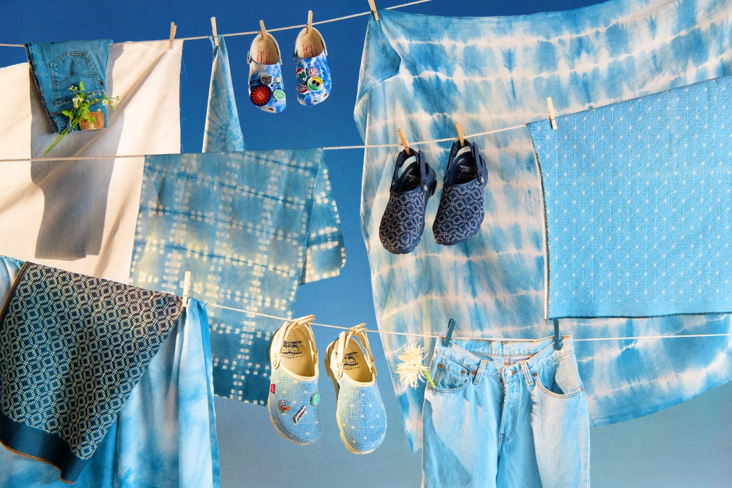 A kollekció első két darabja a Crocs All-Terrain Clog-ját gondolja tovább. A papucsok egy farmerbe burkolt panellel lettek kiegészítve, Sashiko varrással – egy hagyományos japán hímzéstechnikával. Úgy, mint a Levi’s® farmereken, a jobb cipőn itt is megtalálható a piros címke, a sarokpánton elhelyezett Levi’s® füles gombbal együtt, emellett egy japán kétlovas logó is feltűnik a papucs belsejében. Minden párhoz jár három prémium fém Jibbitz™ charm, melyek speciálisan ehhez a kollekcióhoz készültek. A Navy és Bone színekben elérhető klumpák állítható turbó sarokpántja és bordázott gumi külső talpa a jobb talajfogást és a tartósságot segíti.