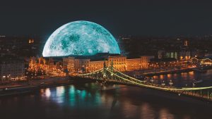 Bizony még a Corvinus tekintélyes épületéről is elvonná a figyelmet, ha a világ legnagyobb gömb alakú épülete a Fővám térre kerülne. A Las Vegasban található Sphere homlokzatát egy 54 000 m2-es képernyő borítja és olyan fényes, hogy még az űrből is látható.