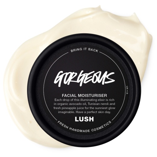 A Gorgeous egy könnyed, mégis hihetetlenül hatékony arckrém. Kis adagokban, kézzel készül a Lush manufaktúráiban, benne a legkiválóbb hidegen sajtolt avokádó- és olívaolajjal, friss gyümölcslevekkel és gyengéden ápoló virágkivonatokkal.
