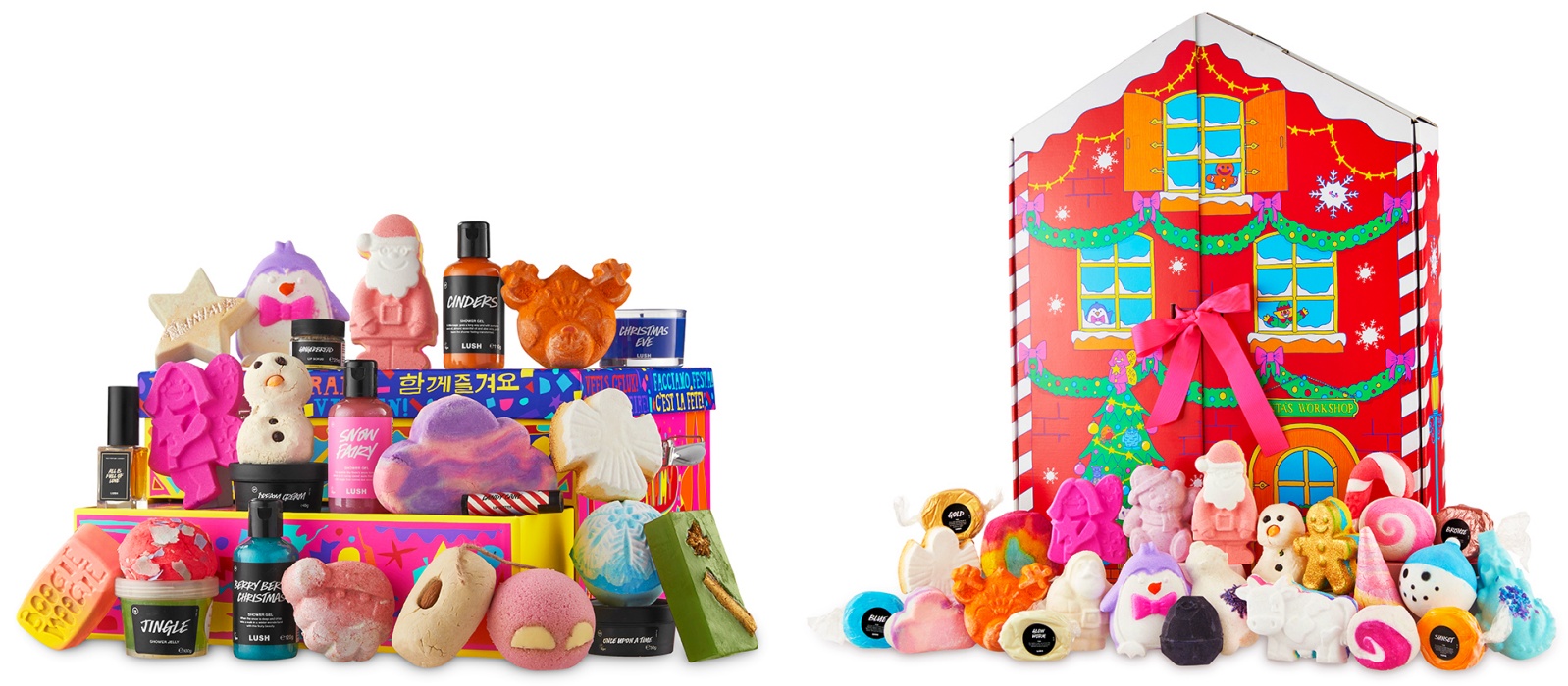 „A csomagolást a gyermekkori babaházas játékok emléke és a Mikulás műhelyéről alkotott elképzeléseim ihlették. Csodálatos lenne, ha valaki megtartaná a dobozt, és babaházként vagy játszóházként használná sok-sok karácsonyon át, így fejlesztve az újabb és újabb generációk képzelőerejét. A kalendárium dizájnjában az évek során megformált ‘Christmas Buds’ karaktereim köszönnek vissza, amelyeket az éles szeműek egészen biztosan kiszúrnak korábbi ajándékcsomagokon és kendőcsomagolásokon. A csapatban néhány új karakter is helyet kapott, amelyek termék formájában is megjelennek, ilyen például a Lump of Coal, a Groovy Fairy és a Penguin.”- Rachel Norden, a Lush vezető ajándéktervezője