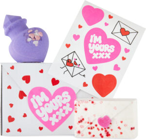 Mondd el a szerelmednek, hogy “A tiéd vagyok!” ezzel az interaktív Valentin-napi ajándékkal, mely belül két édes illatú fürdőcsodát rejt! Szabd személyre a dobozt ajándékozás előtt! Dekoráld kedves rajzocskákkal vagy használd a matricákat az imádnivaló eredményért!
