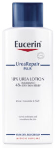 Nagyon száraz bőr esetén érdemes a rutin részeként egy hidratáló tusfürdő és testápoló együttesét alkalmazni. Az Eucerin UreaRepair PLUS termékcsalád 5% és 10%-os urea-tartalmú krémeket és ápolókat kínál, köztük kifejezetten arcra, kézre, lábra, valamint testre kifejlesztett termékekkel.