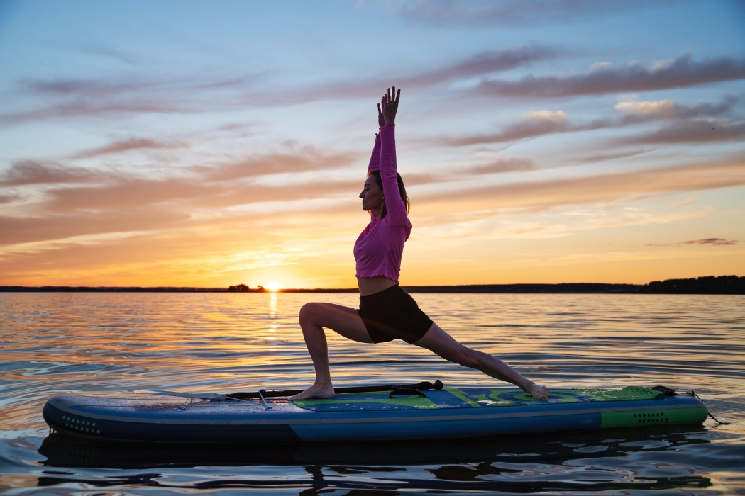 Ha az adrenalinlöket helyett inkább valami lassabb, nyugtató mozgásformát választanál, akkor érdemes kipróbálnod a paddleboard jógát. A jógázás előnyei mellett a vízben, deszkán végzett gyakorlatok erősíti az egyensúlyérzéked és a törzsed, miközben az alattad hullámzó víz ritmust ad a mozdulataidnak. Amellett, hogy lenyugtatja az elméd, ez tulajdonképpen egy kemény erőnléti edzés, amivel átmozgathatod az egész testedet.
