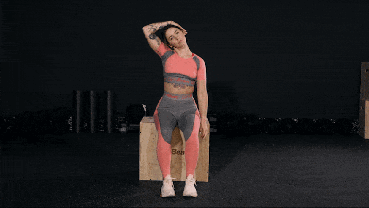 2. Helyezzük a jobb tenyeredet a bal fülre. Belégzésre döntsük a fejedet jobb oldalra a hónalj irányába, és tartsuk meg a pozíciót legalább 20-30 másodpercig. Ekkor érezni lehet a növekvő feszültséget a nyak hátsó részén egészen a válladig.