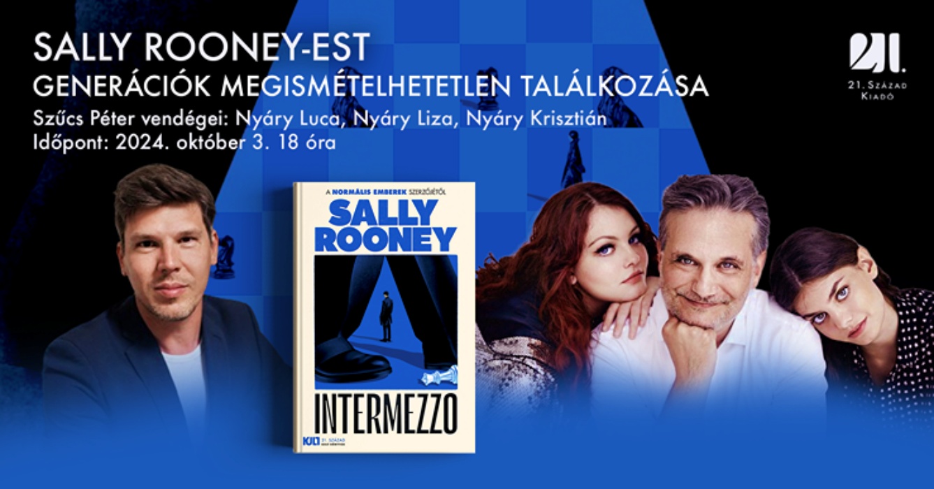 Ilyen még nem volt: Nyáry Luca mellett ritkán látott húga, Nyáry Liza is fellép, hogy apukájukkal nyomába eredjenek, mitől olyan népszerű Sally Rooney, és mivel tud megfogni az Y-korosztály bemutatásán keresztül 14 évestől 44 évesig szinte mindenkit. Generációk megismételhetetlen találkozása egy olyan beszélgetésben, amiben a Nyáry családot Szűcs Péter faggatja. Szó lesz többek között Sally Rooney vadonatúj, a nemzetközi megjelenéssel egy időben, szeptember 24-én érkező kötetéről, az Intermezzóról is. Jegyek: ITT