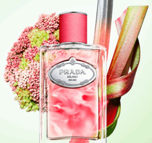 A Prada gyümölcsös virágos interpretációja a rebarbaráról az édes, gyümölcsös érintést szikrázóan friss tónusokkal mutatja be egy váratlan, mégis kifinomult illatban.