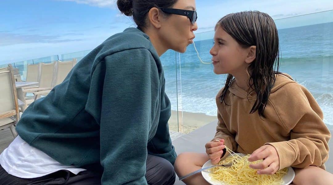 Egyik kislányával, Penelopéval újraalkották a Susi és tekergő mesefilm egyik híres jelenetét, a spagetti csókot. A büszke anyuka Instagram oldalán osztotta meg a közös képüket. A Susi és Tekergő, vagy eredeti címén a Lady and the Tramp Disney 1955-ös meséje, ami a mai napig a gyerekek kedvence. Nem véletlenül esett éppen erre a jelenetre a lányok választása. Tengerparti házuk teraszán, idilli környezetben, csodálatos háttérrel igencsak jól mutatnak. Kourtney egy laza szabadidő ruhát visel, haját kontyba fogva, míg kislánya láthatóan nemrég jött ki a vízből és csak egy kapucnis felsőt kapott magára, hogy a Mamival megosszanak egy tál spagettit.
