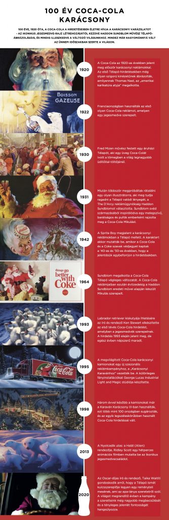 A Coca-Cola reklámjaiban éppen száz éve, vagyis 1920 óta szerepel a Télapó figurája. Az első reklámokban még nyoma sincs azonban a ma ismert figura vidámságának, inkább szigorúan néz ki, amilyennek korábban Thomas Nast, az „amerikai karikatúra atyja” megalkotta. Sokak kedvencei, a Coca-Cola jegesmedvéi is ekkoriban tűntek fel egyébként a cég hirdetéseiben: 1922-ben Franciaországban volt látható az első olyan Coca-Cola reklám, amelyen jegesmedve szerepelt. (Az első jegesmedvés tévéreklámra azonban egészen 1993-ig kellett várni.)