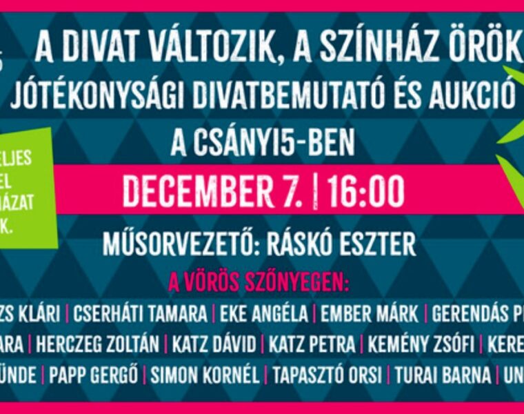A Csányi5 különleges jótékonysági délutánra készül. A divat változik, a színház örök címmel. A Csányi5 a program teljes bevételével a független és értékteremtő Gólem Színházat támogatja. A rendhagyó esemény célja a divat…