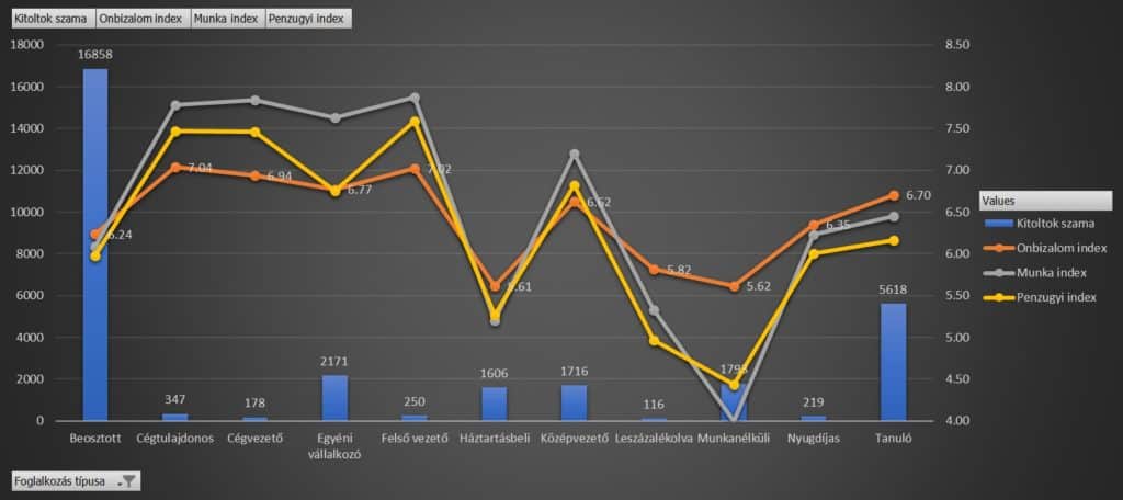 A felmérés további érdekessége, hogy a hatvan pluszos nyugdíjas korcsoportba tartozó kitöltők lényegesen magasabb pontszámokat adtak meg, boldogabbnak, kiegyensúlyozottabbnak értékelték önmagukat, míg a harmincas-negyvenes korosztály inkább szorong,