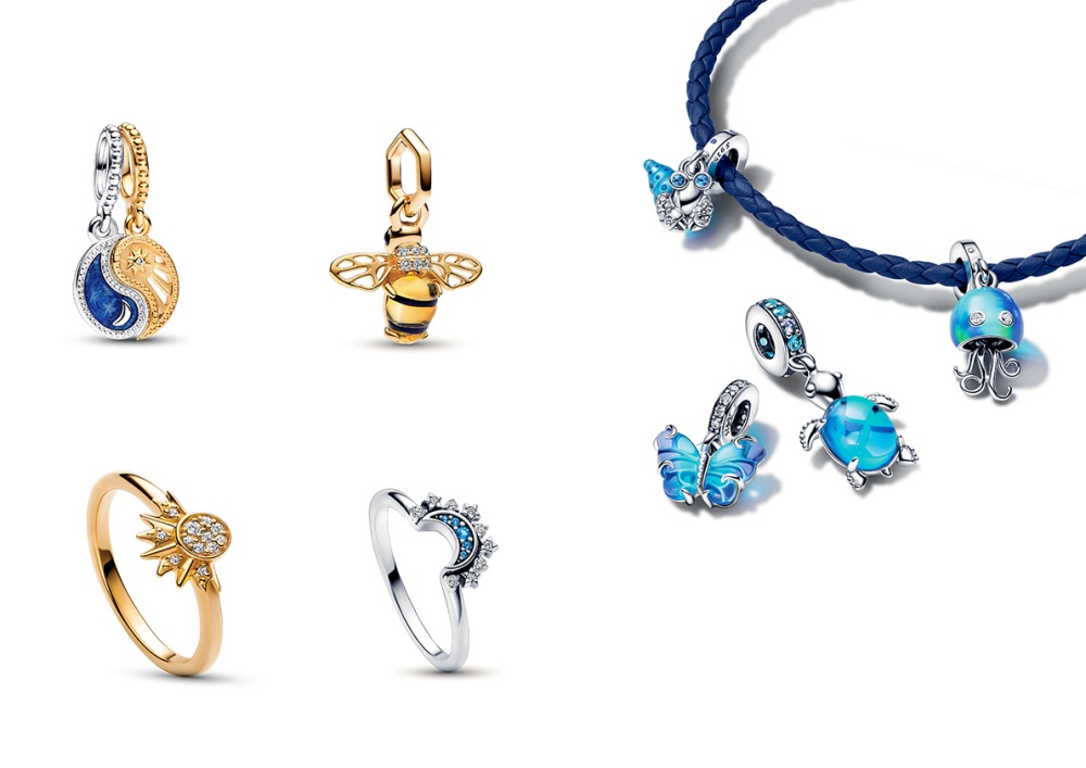 Az erő, a természeti világ őrzőjének szimbólumát jeleníti meg az új, szemet gyönyörködtető Szikrázó méhecske függő charm. A méhecske teste cabochon csiszolású, sárga színű, mesterséges kristály, amit kézzel festett, fekete tűzománc csíkok tesznek tökéletessé. A részletgazdag, az átalakulást szimbolizáló pillangó függő charmot pedig kék árnyalatú, muranoi üvegszárnyak díszítik, amiket örvénylő sterling ezüst részletekkel rögzítettek. A charm az újjászületést és megújulást szimbolizálva a nyári évszak reményével vértezi fel viselőjét.