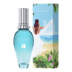 Az idei évben is elérkezett a pillanat, mikor ideje elszökni egy új, ismeretlen helyre. A CHIFFON SORBET tengerkék üvegével és tengerpartot megjelenítő belső csomagolásával egy igazi életérzést ad. Az ESCADA-nő kitűnik természetes eleganciájával és érzéki aurájával, amelyet magába zár ez az elragadó, nőies és felejthetetlen illat. Az ESCADA CHIFFON SORBET a végtelen nyárba kalauzol minden ESCADA nőt, tiszteleg a napsütés, a tenger és a nyári szellő előtt.